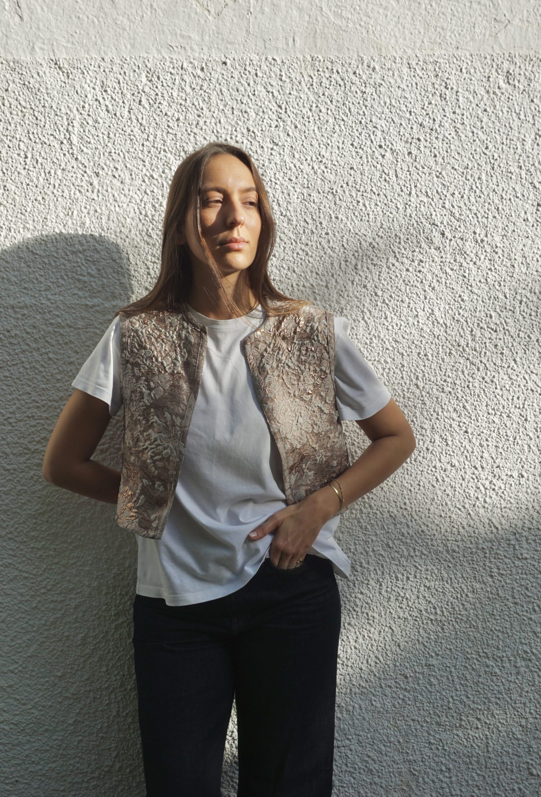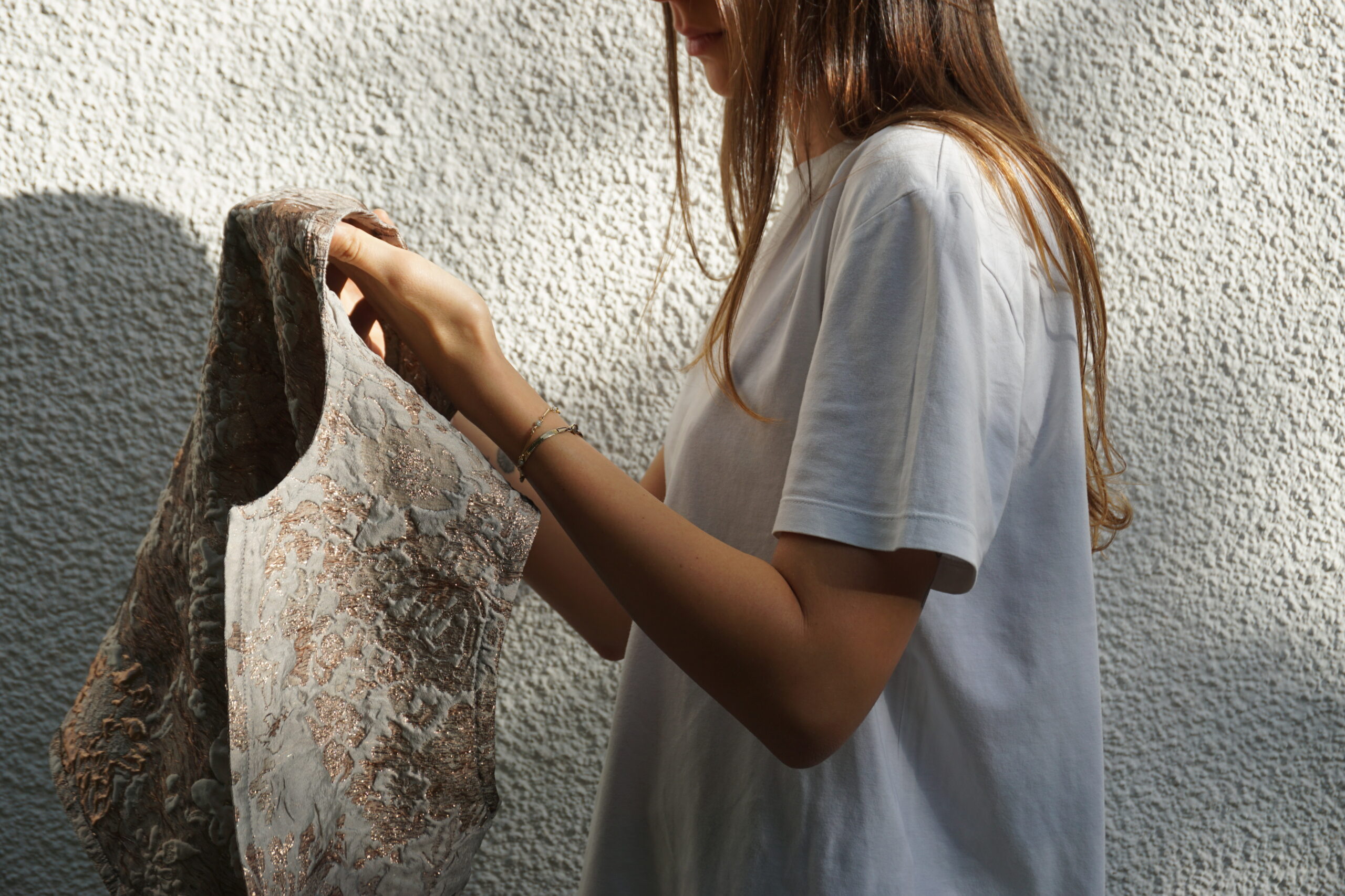 Dry Clean Only to preserve the fabric’s texture and metallic finish.